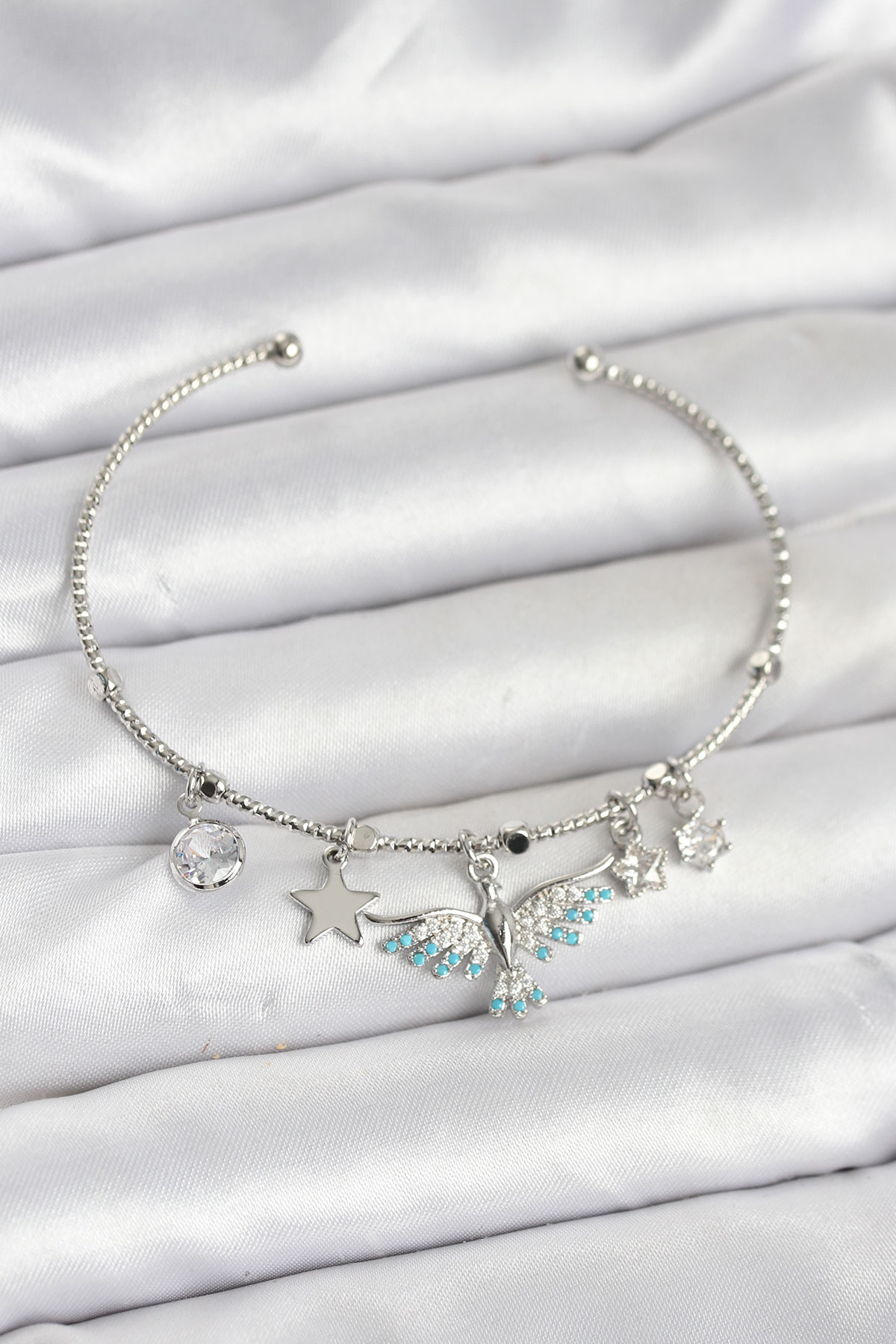 Tegan Anka Kuşu Charmlı Gümüş Renk Pirinç Kadın Bileklik TG27BB8040
