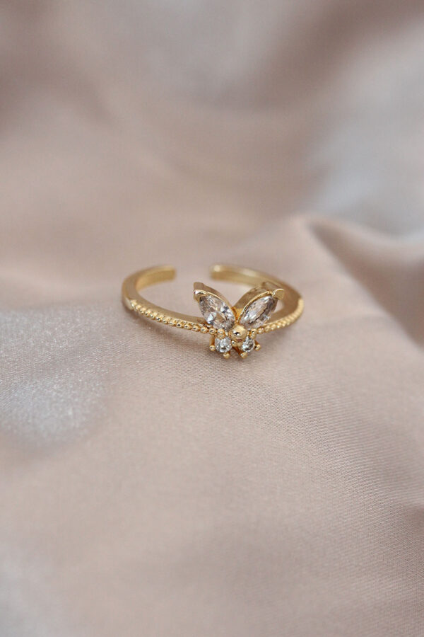 Tegan Ayarlamalı Altın Renk Metal Zirkon Taş ve Kristal Taşlı Kelebek Model Yüzük TG27BYK2053