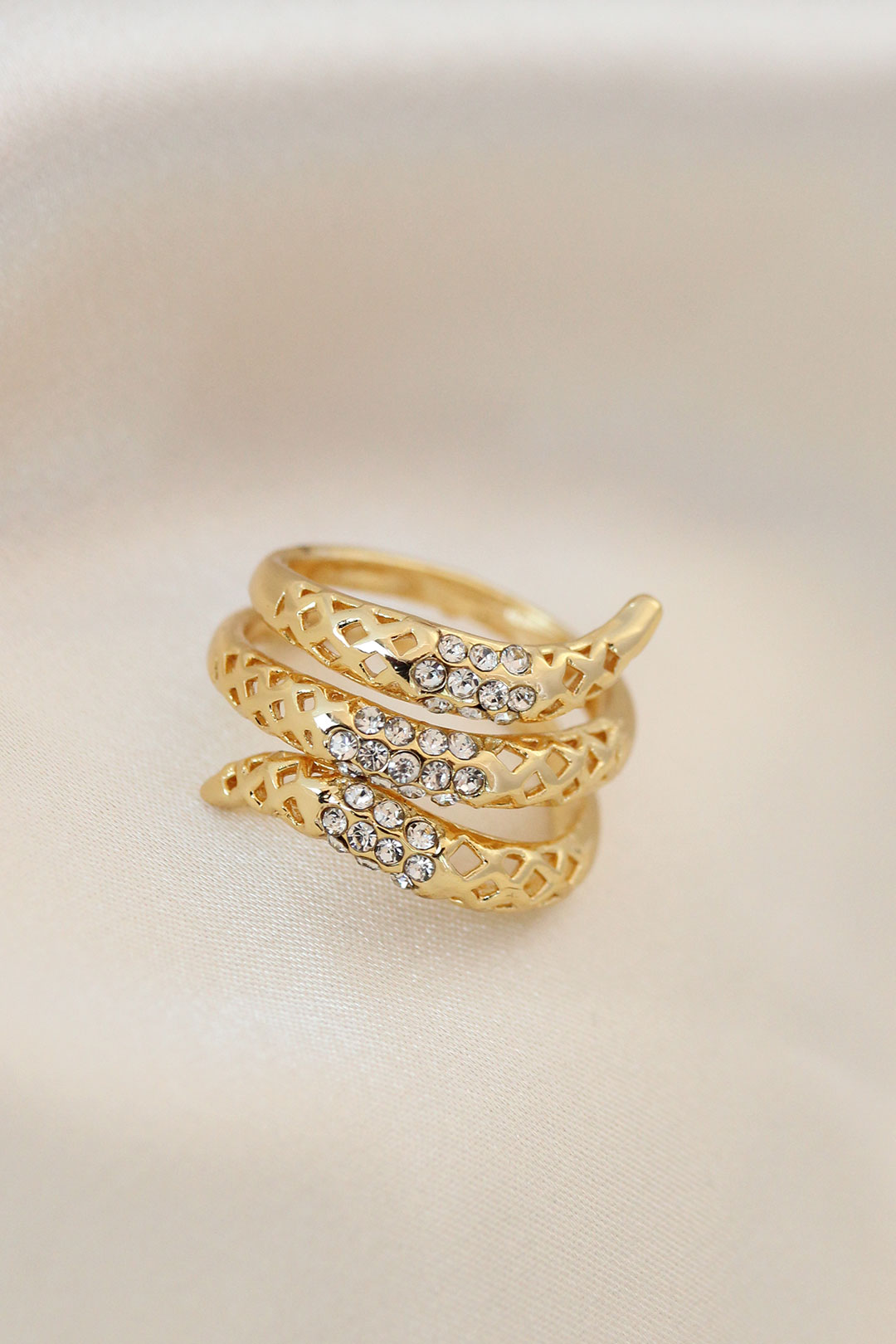 Tegan Ayarlamalı Altın Renk Metal Zirkon Taşlı Yüzük TG27BYK2040