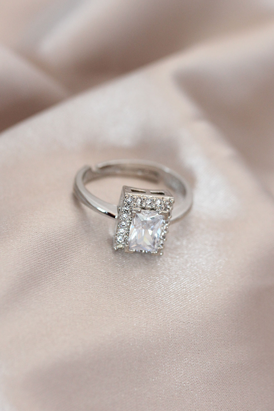 Tegan Ayarlamalı Silver Renk Metal Zirkon ve Kristal Taşlı Dikdörtgen Model Yüzük TG27BYK2067