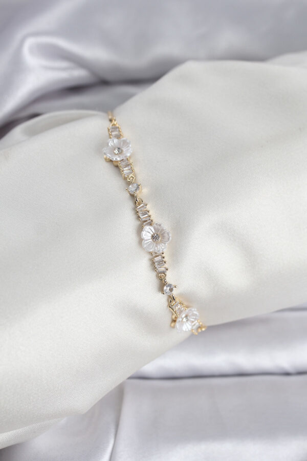 Tegan Baget Zirkon Taşlı Çiçek Model Gold Renk Asansörlü Kadın Bileklik TG27BB8330
