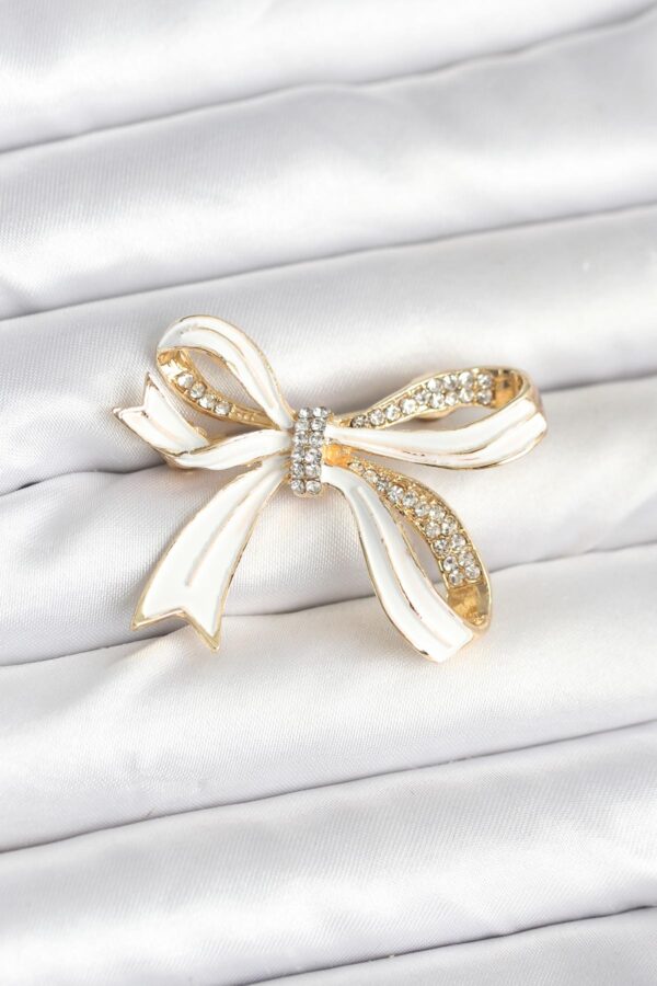 Tegan Beyaz Renk Fiyonk Model Broş TG27BR461