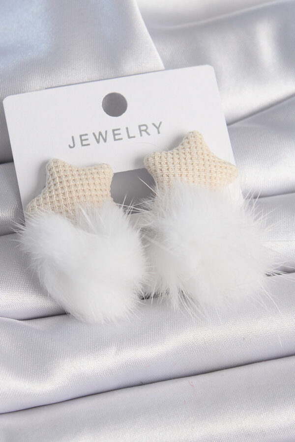 Tegan Beyaz Renk Tüylü Yıldız Ponpon Model Kadın Küpe TG27BKP9557