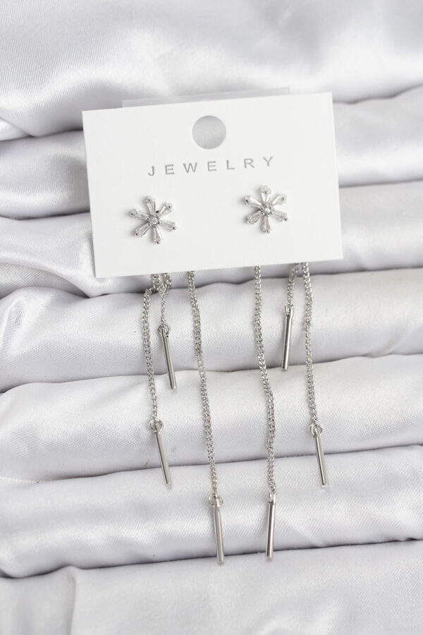 Tegan Çiçek Model Gümüş Pirinç Sallantılı Kadın Küpe TG27BKP11464