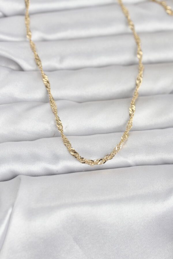 -Uzunluk: 60 cm uzunluğundadır-Materyal: Dayanıklı pirinç materyal üzerine 1. Sınıf 14K Gold (Altın) Rengi Kaplama uygulanmıştır.-Dayanıklılık: Doğru ve özenli kullanımda kararma ve renk solmasına karşı dirençlidir.-Kullanım Önerisi: Ürününüzün ışıltısını ve kaplama kalitesini uzun yıllar koruyabilmesi için parfüm, su, deterjan ve kimyasal maddelerle doğrudan temasından kaçınmanızı öneririz.-Cilt Uyarısı: Her cilt yapısının metal ve kaplamalara vereceği tepki (pH değerine bağlı olarak) farklılık gösterebilir.-Sağlıklı ve mutlu günlerde kullanmanız dileğiyle.