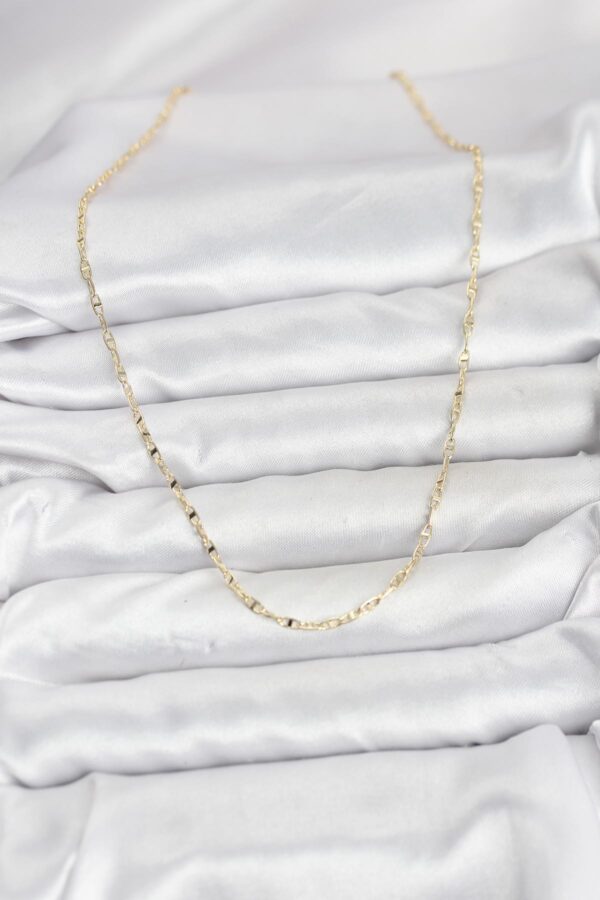 -Uzunluk: 45 cm uzunluğundadır-Materyal: Dayanıklı pirinç materyal üzerine 1. Sınıf 14K Gold (Altın) Rengi Kaplama uygulanmıştır.-Dayanıklılık: Doğru ve özenli kullanımda kararma ve renk solmasına karşı dirençlidir.-Kullanım Önerisi: Ürününüzün ışıltısını ve kaplama kalitesini uzun yıllar koruyabilmesi için parfüm, su, deterjan ve kimyasal maddelerle doğrudan temasından kaçınmanızı öneririz.-Cilt Uyarısı: Her cilt yapısının metal ve kaplamalara vereceği tepki (pH değerine bağlı olarak) farklılık gösterebilir.-Sağlıklı ve mutlu günlerde kullanmanız dileğiyle.