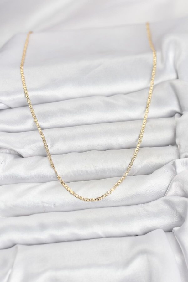 -Uzunluk: 60 cm uzunluğundadır-Materyal: Dayanıklı pirinç materyal üzerine 1. Sınıf 14K Gold (Altın) Rengi Kaplama uygulanmıştır.-Dayanıklılık: Doğru ve özenli kullanımda kararma ve renk solmasına karşı dirençlidir.-Kullanım Önerisi: Ürününüzün ışıltısını ve kaplama kalitesini uzun yıllar koruyabilmesi için parfüm, su, deterjan ve kimyasal maddelerle doğrudan temasından kaçınmanızı öneririz.-Cilt Uyarısı: Her cilt yapısının metal ve kaplamalara vereceği tepki (pH değerine bağlı olarak) farklılık gösterebilir.-Sağlıklı ve mutlu günlerde kullanmanız dileğiyle.