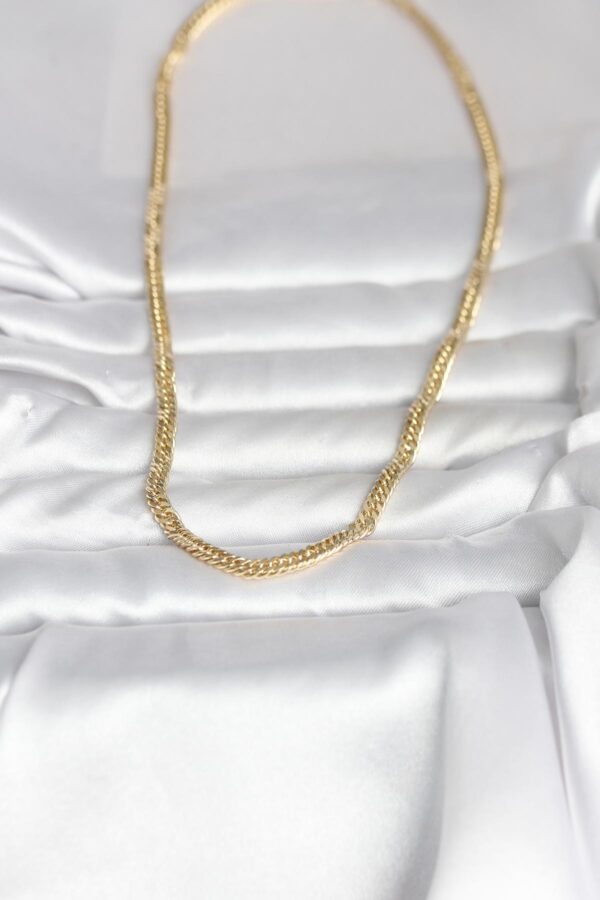 -Uzunluk: 45 cm uzunluğundadır-Materyal: Dayanıklı pirinç materyal üzerine 1. Sınıf 14K Gold (Altın) Rengi Kaplama uygulanmıştır.-Dayanıklılık: Doğru ve özenli kullanımda kararma ve renk solmasına karşı dirençlidir.-Kullanım Önerisi: Ürününüzün ışıltısını ve kaplama kalitesini uzun yıllar koruyabilmesi için parfüm, su, deterjan ve kimyasal maddelerle doğrudan temasından kaçınmanızı öneririz.-Cilt Uyarısı: Her cilt yapısının metal ve kaplamalara vereceği tepki (pH değerine bağlı olarak) farklılık gösterebilir.-Sağlıklı ve mutlu günlerde kullanmanız dileğiyle.