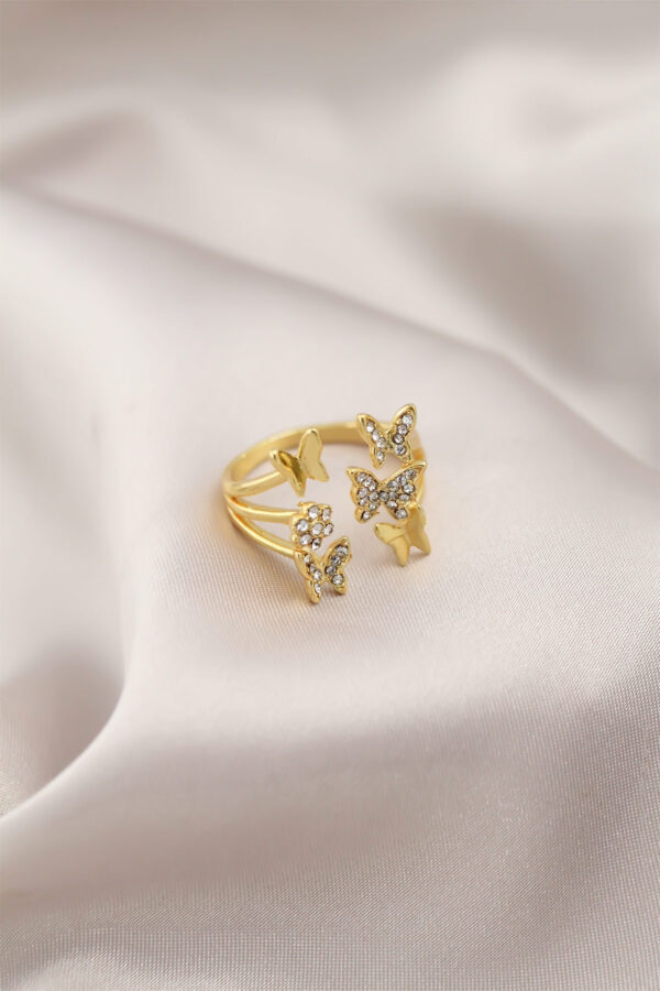 Gold Renk Metal Kelebek Model Kadın Yüzük – Ürün tipi metaldir.- Her parmak için uyumludur, ayarlanabilir.- Ürünlerin özelliklerini kaybetmeden daha uzun süre kullanılabilmesi için, parfüm, su, deterjan, dezenfektan gibi sıvı kimyasallardan uzak tutularak kullanılması tavsiye edilir. Dikkatli kullanımda kararma yapmaz.- Sağlıklı ve mutlu günlerde kullanmanız dileğiyle 🙂