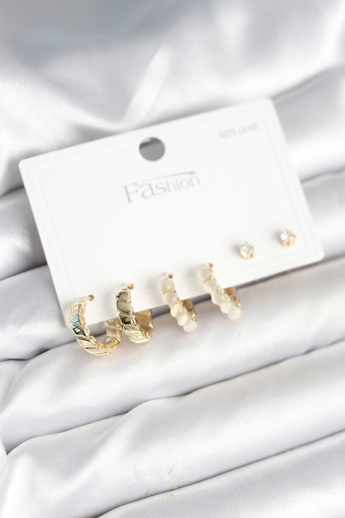 Tegan Gold Renk Pirinç Halka 925 Ayar Gümüş Çivili Kadın Küpe Seti TG27BKP11272