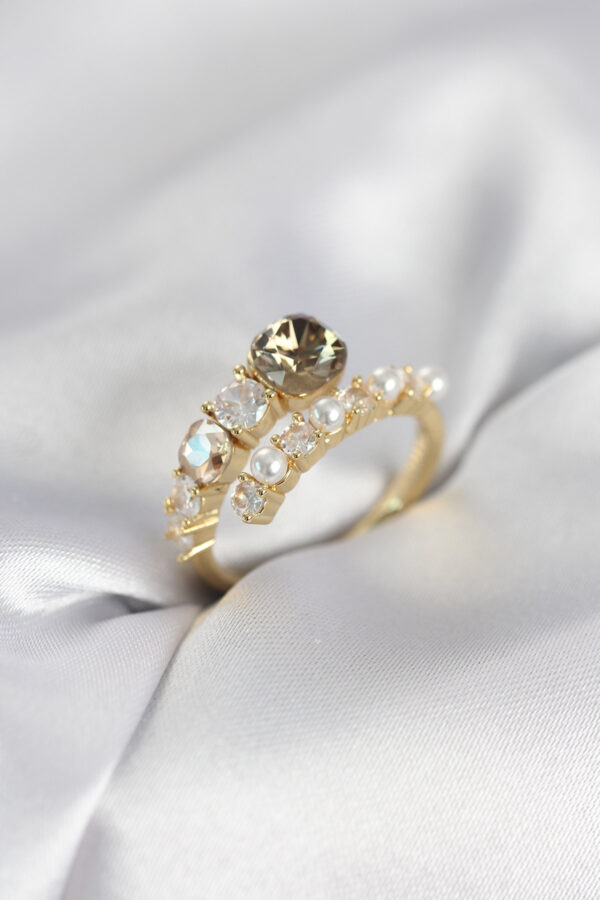 Tegan Gold Renk Pirinç Zirkon Taşlı İncili Kadın Yüzük TG27BYK4036