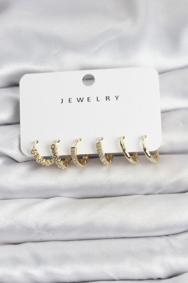 Tegan Gold Renk Pirinç Zirkon Taşlı Kadın Küpe Seti TG27BKP11477