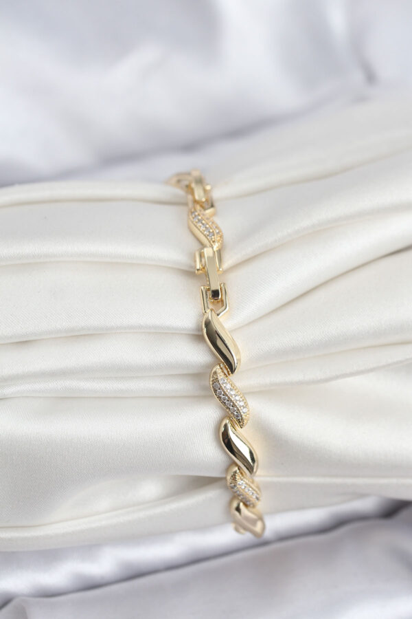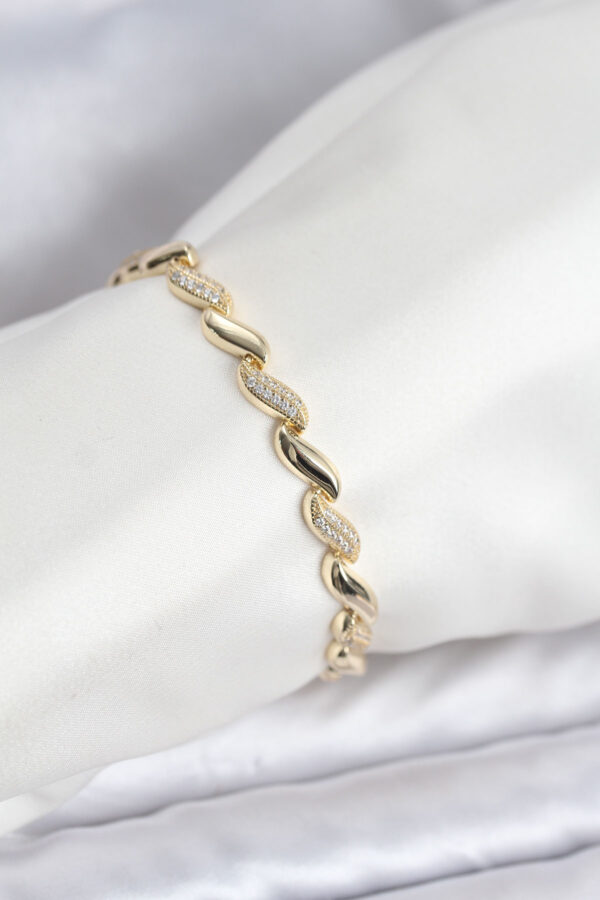 Tegan Gold Renk Sıralı Damla Model Zirkon Taşlı Pirinç Kadın Bileklik TG27BB8169