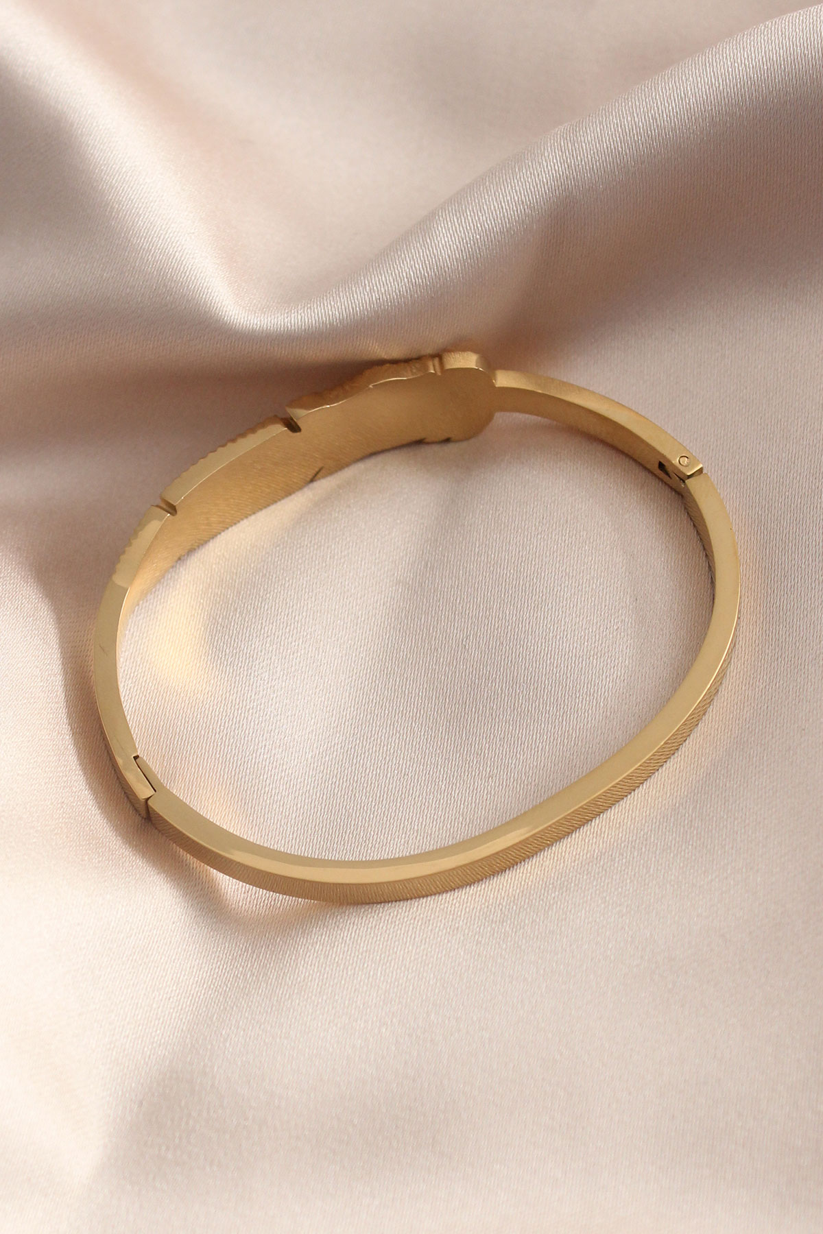 Tegan Gold Renk Yaprak Model Zirkon Taş Detay Kelepçe Kadın Bileklik TG27BB4681