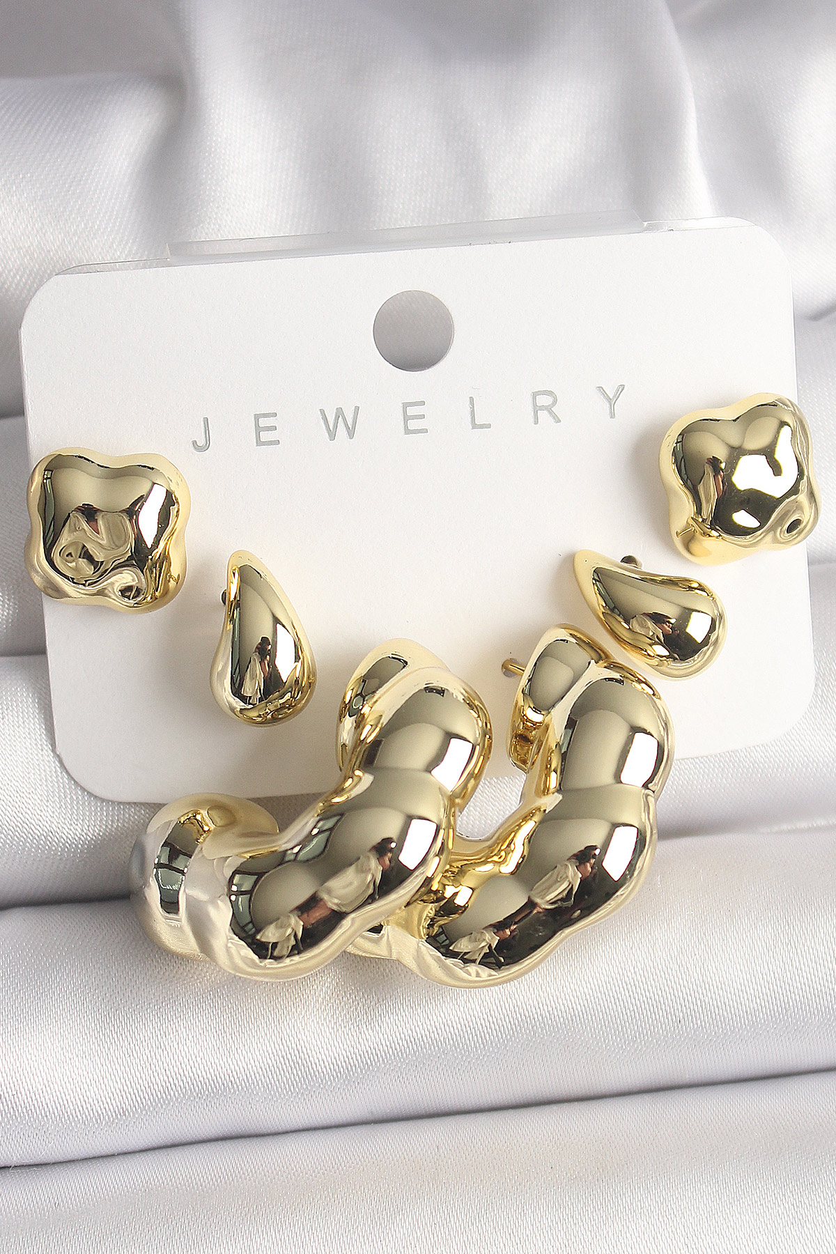 Tegan Gold Renk Yonca Damla Halka Model CCB Plastik Kadın Küpe Seti TG27BKP10028