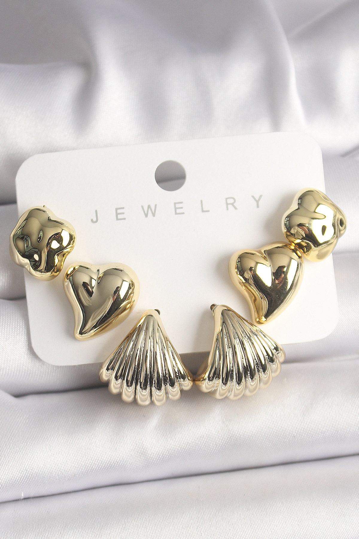Tegan Gold Renk Yonca Kalp Deniz Kabuğu Figür CCB Kadın Küpe Seti TG27BKP10022