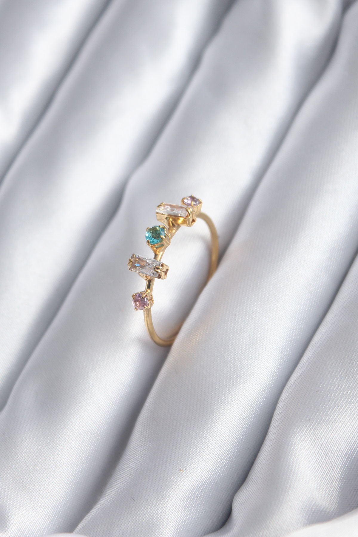 Tegan Gold Renk Zirkon Taşlı Renkli Zirkon Taşlı Kadın Yüzük TG27BYK2846