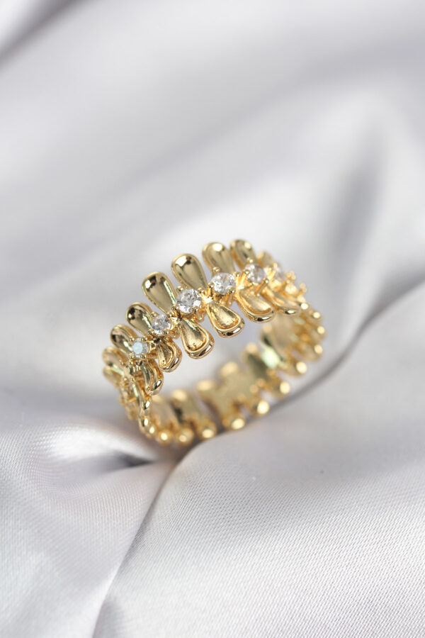 Tegan Gold Renk Zirkon Taşlı Sıralı Damla Model Kadın Yüzük TG27BYK4046