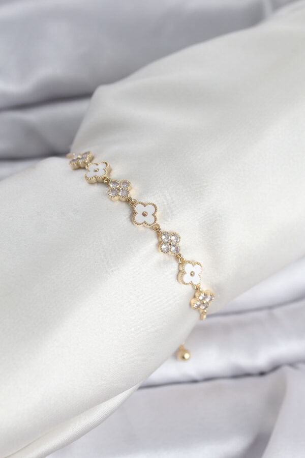 Tegan Gold Renk Zirkon Taşlı Sıralı Yonca Model Asansörlü Kadın Bileklik TG27BB8340