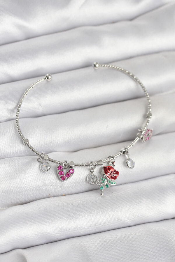 Tegan Gül Charmlı Gümüş Renk Pirinç Kadın Bileklik TG27BB8044