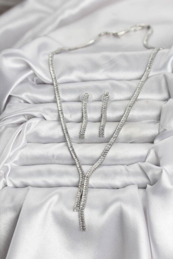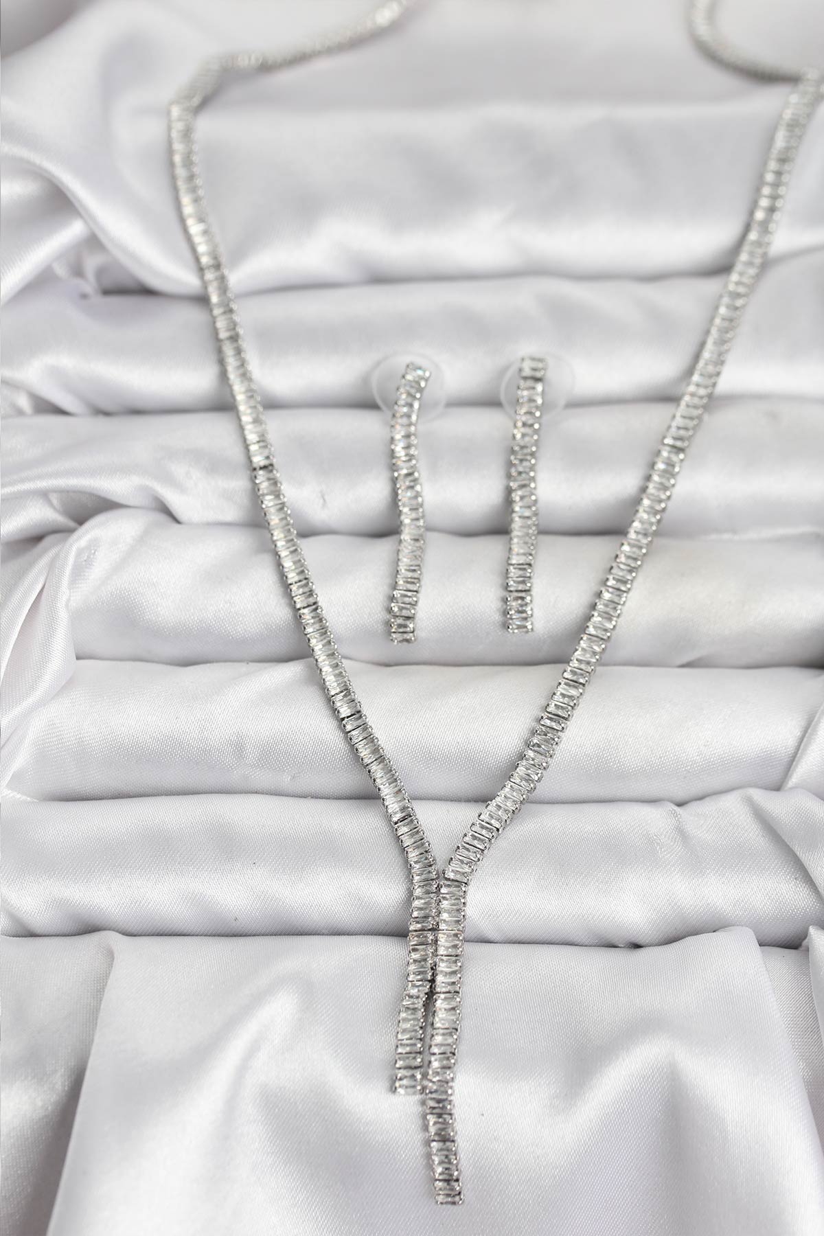 Tegan Gümüş Renk Baget Zirkon Taşlı Kadın Kolye Küpe Set TG27BKO10637