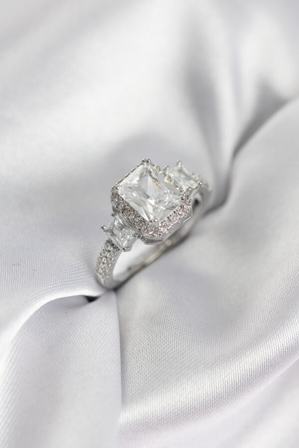 Tegan Gümüş Renk Kare Baget Zirkon Taşlı Tek Taş Model Kadın Yüzük TG27BYK3937