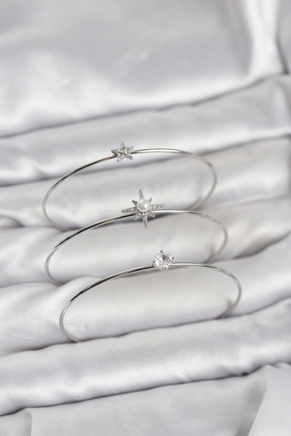 Tegan Gümüş Renk Kutup Yıldızı Model Zirkon Taşlı 3’lü Kadın Bileklik Kombini TG27BB8346