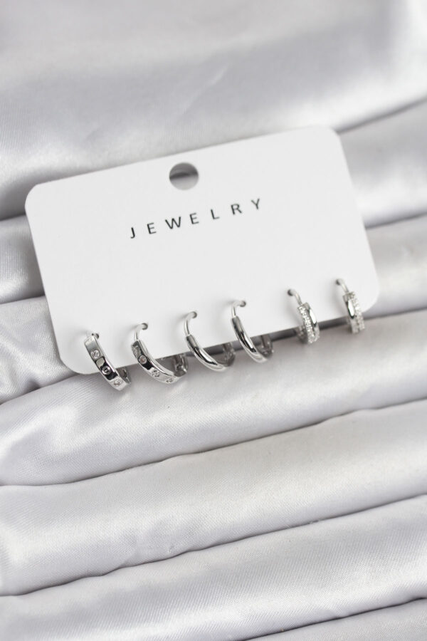 Tegan Gümüş Renk Pirinç 3 Çift Kadın Küpe Seti TG27BKP11645