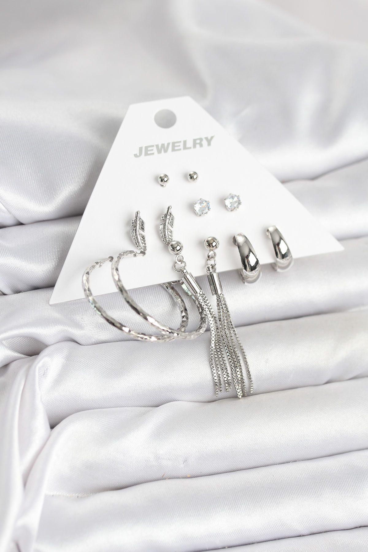 Tegan Gümüş Renk Pirinç 6 Çiftli Kadın Küpe Seti TG27BKP11331