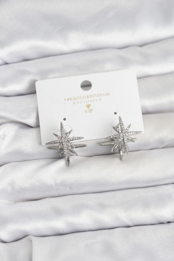 Tegan Gümüş Renk Pirinç Çift Taraflı Kutup Yıldızı Kadın Küpe TG27BKP11511