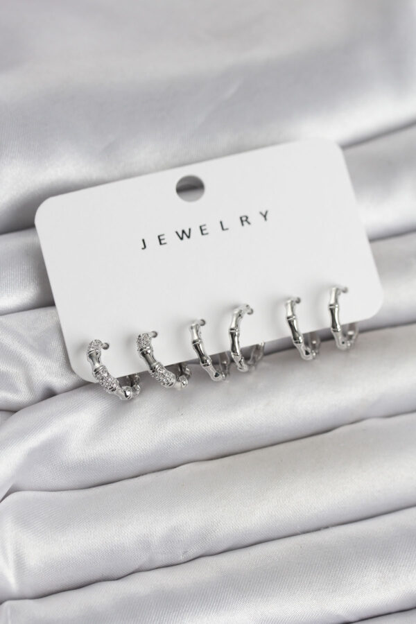 Tegan Gümüş Renk Pirinç Kemik Model 3 Çift Kadın Küpe Seti TG27BKP11647