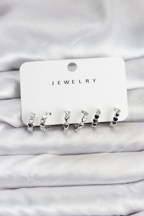 Tegan Gümüş Renk Pirinç Minimal Kalp Detaylı Kadın Küpe Seti TG27BKP11472