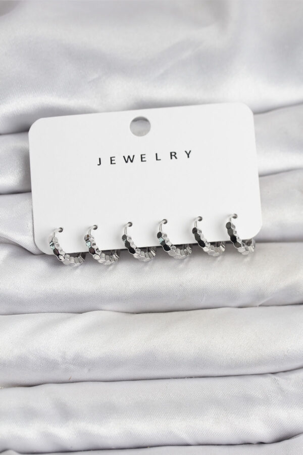 Tegan Gümüş Renk Pirinç Minimal Petek Detaylı Kadın Küpe Seti TG27BKP11474