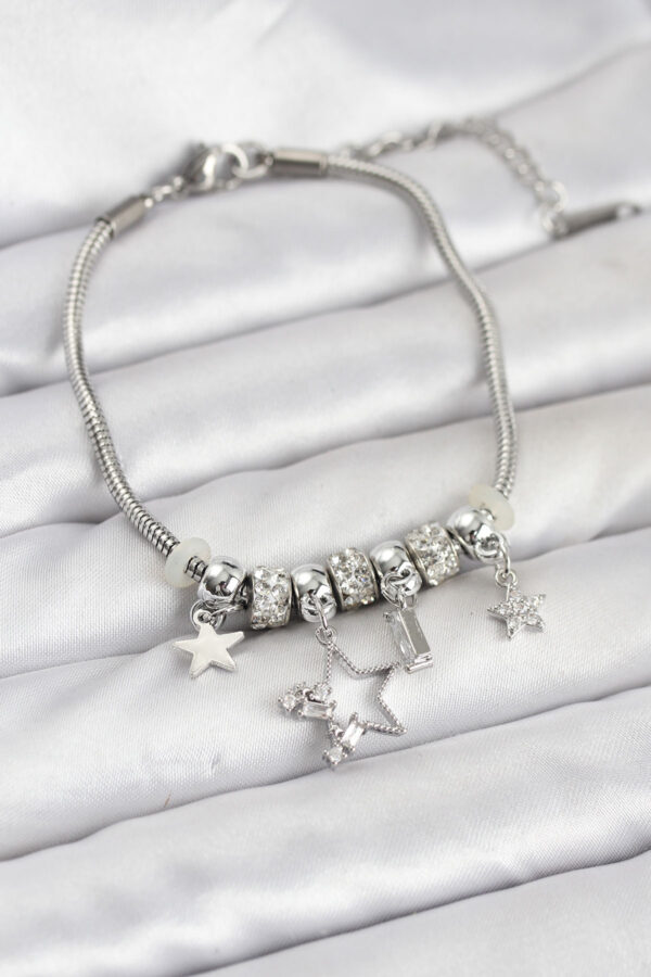 Tegan Gümüş Renk Pirinç Yıldız Model Charmlı Kadın Bileklik TG27BB8220