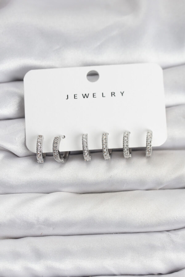 Tegan Gümüş Renk Pirinç Zirkon Taşlı Halka Kadın Küpe Seti TG27BKP11486