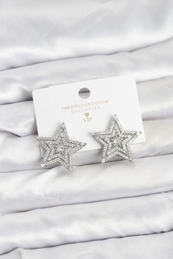 Tegan Gümüş Renk Pirinç Zirkon Taşlı Yıldız Model Kadın Küpe TG27BKP11513