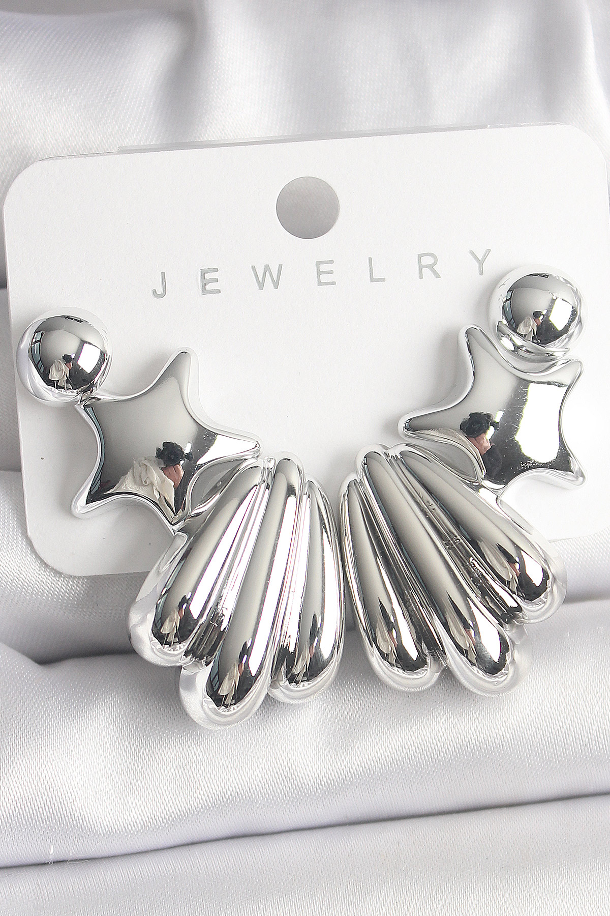 Tegan Gümüş Renk Yıldız Deniz Kabuğu Model CCB Plastik Kadın Küpe Seti TG27BKP10031