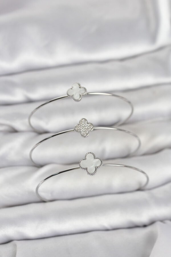 Tegan Gümüş Renk Yonca Model Zirkon Taşlı 3’lü Kadın Bileklik Kombini TG27BB8344