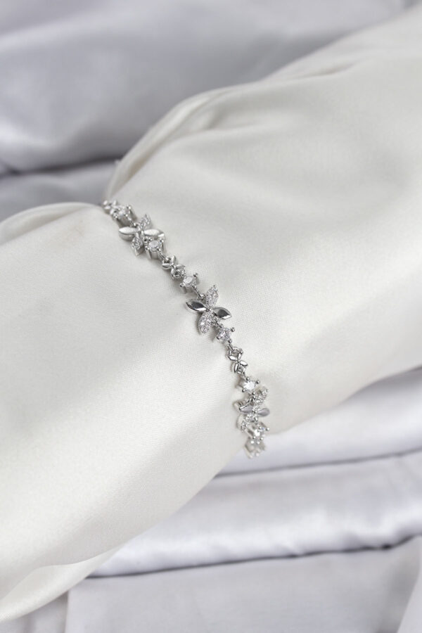 Tegan Gümüş Renk Yonca Model Zirkon Taşlı Asansörlü Kadın Bileklik TG27BB8333
