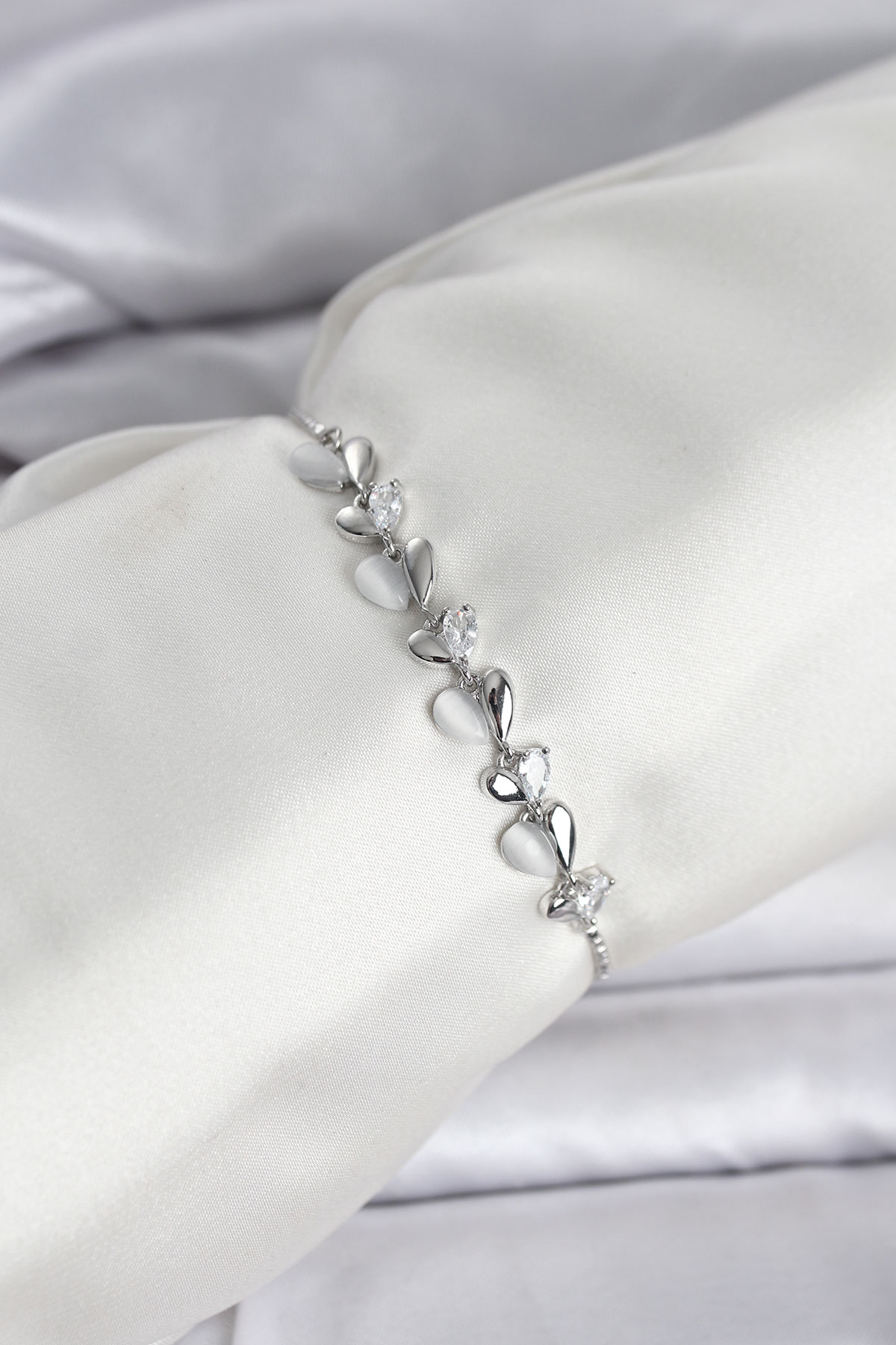 Tegan Gümüş Renk Zirkon Taşlı Sıralı Damla Model Asansörlü Kadın Bileklik TG27BB8337