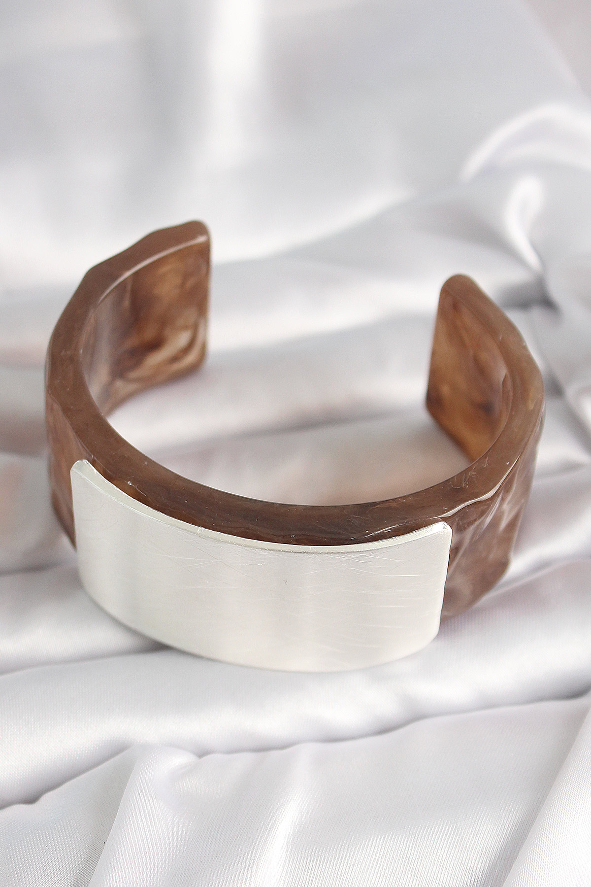 Tegan Kahverengi Mermer Desen Akrilik Plastik Gümüş Dikdörtgen Plaka Vintage Kadın Bilezik TG27BB6676