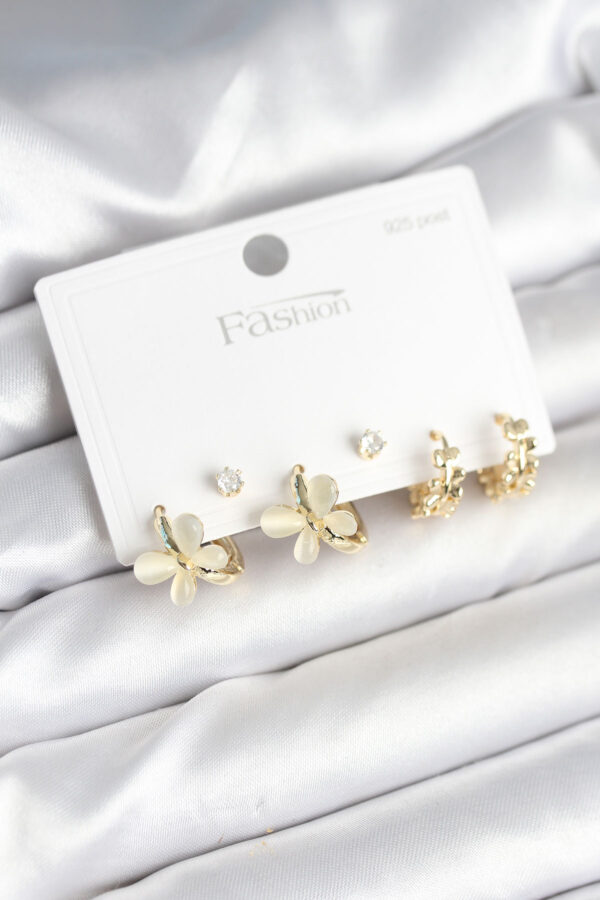 Tegan Kelebek Model Gold Renk Pirinç 925 Ayar Gümüş Çivili Kadın Küpe Seti TG27BKP11271