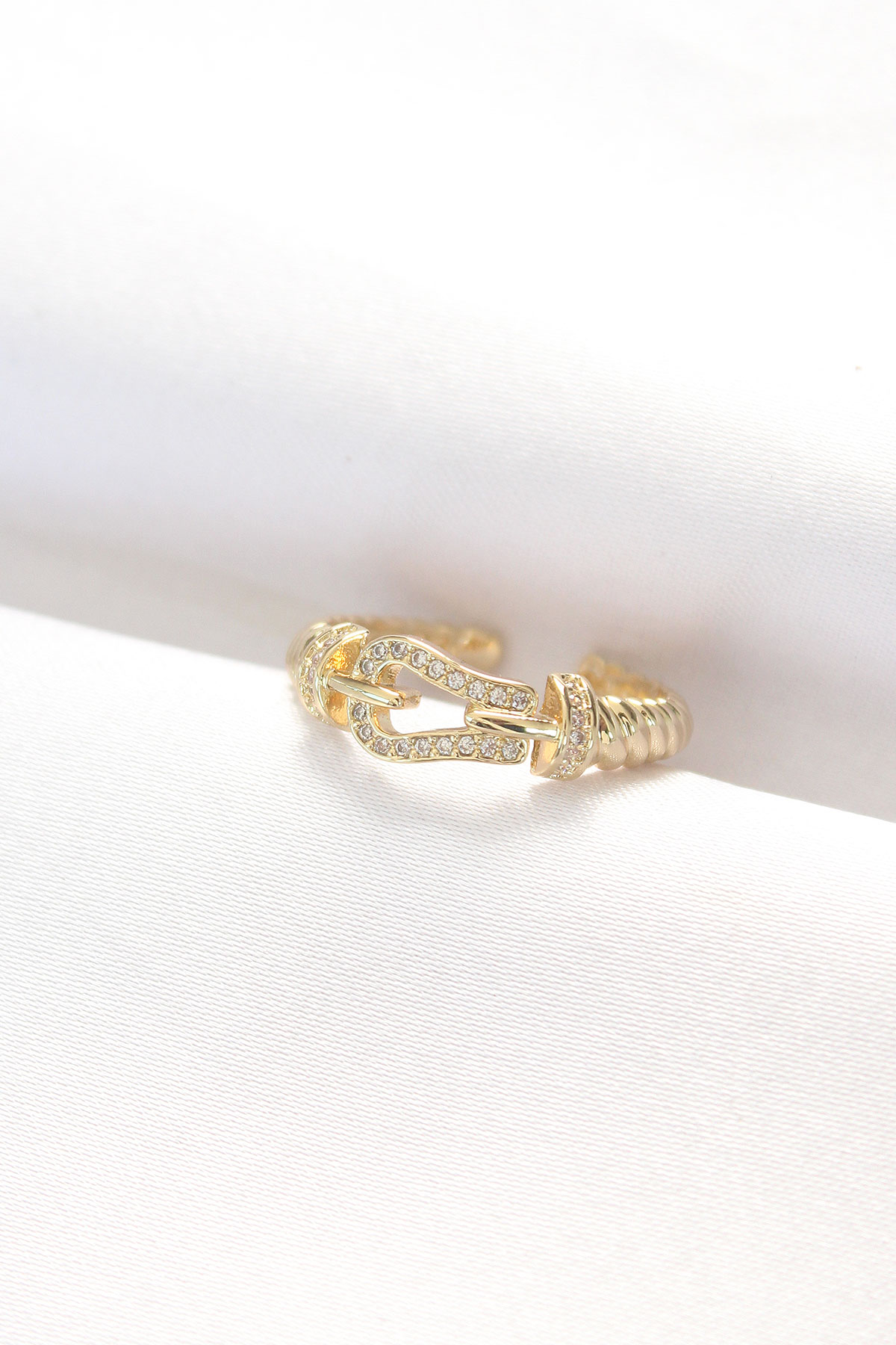 Tegan Kemer Tokası Tasarımlı Gold Renk Zirkon Taşlı Ayarlanabilir Yüzük TG27BYK3099