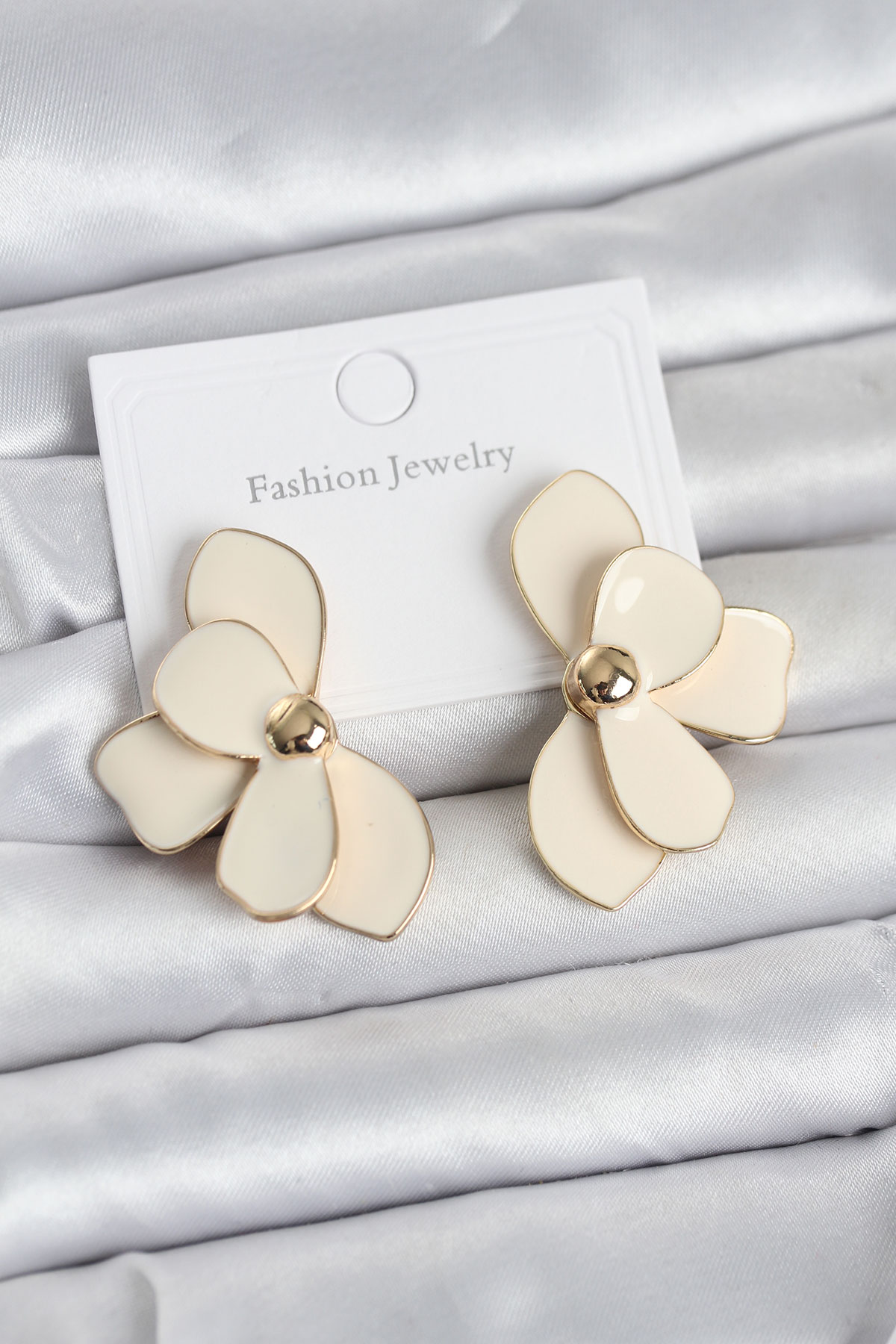 Tegan Krem Mineli Lotus Model Pirinç Kadın Küpe TG27BKP11734