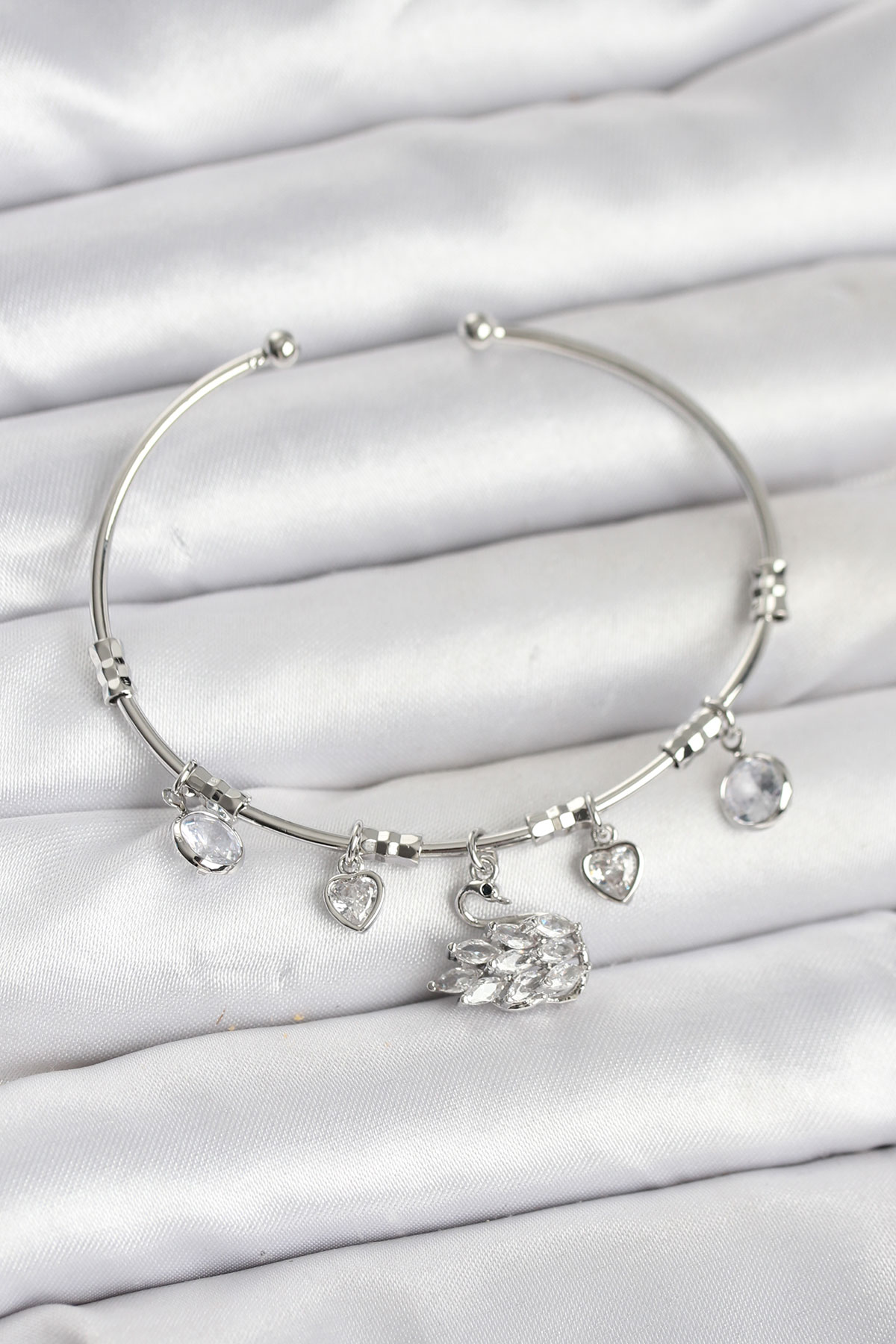 Tegan Kuğu Charmlı Gümüş Renk Kadın Bileklik TG27BB8036