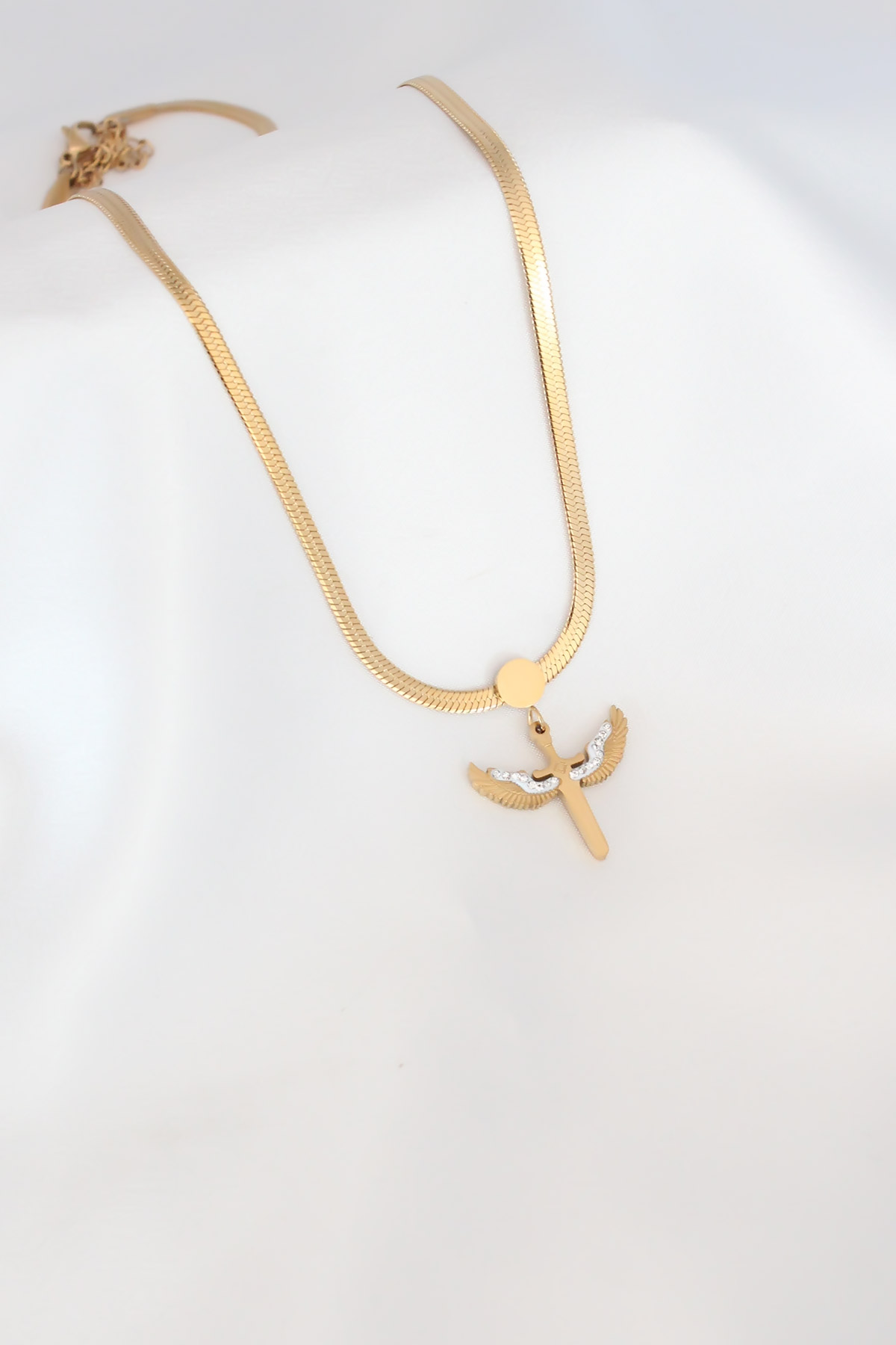 Tegan Mikail Figür Zirkon Taş Detay Gold Renk Çelik İtalyan Zincir Kadın Kolye TG27BKO6569