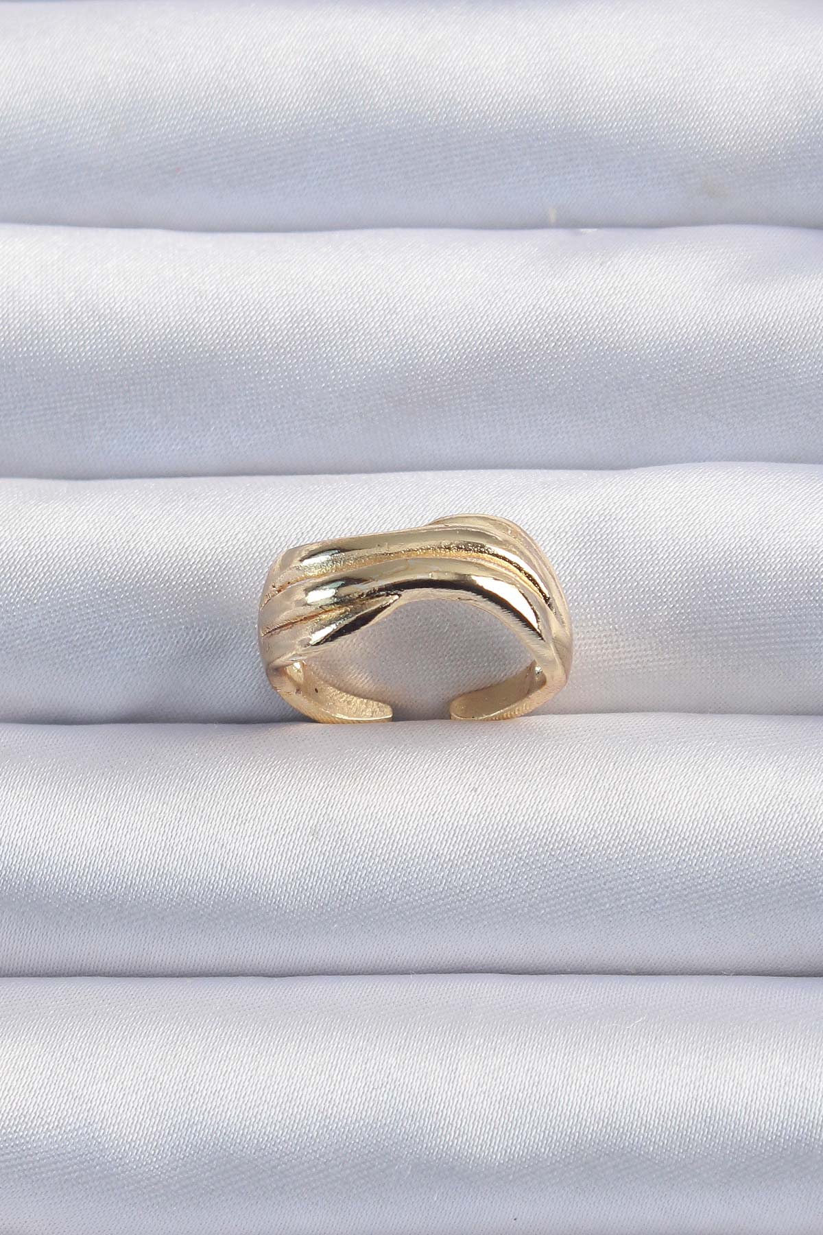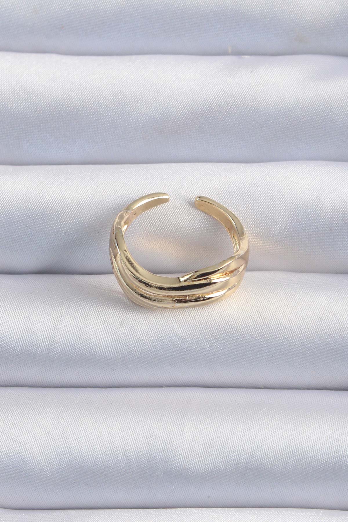 Tegan Pirinç Altın Renk Kıvrımlı Ayarlanabilir Yüzük TG27BYK3291