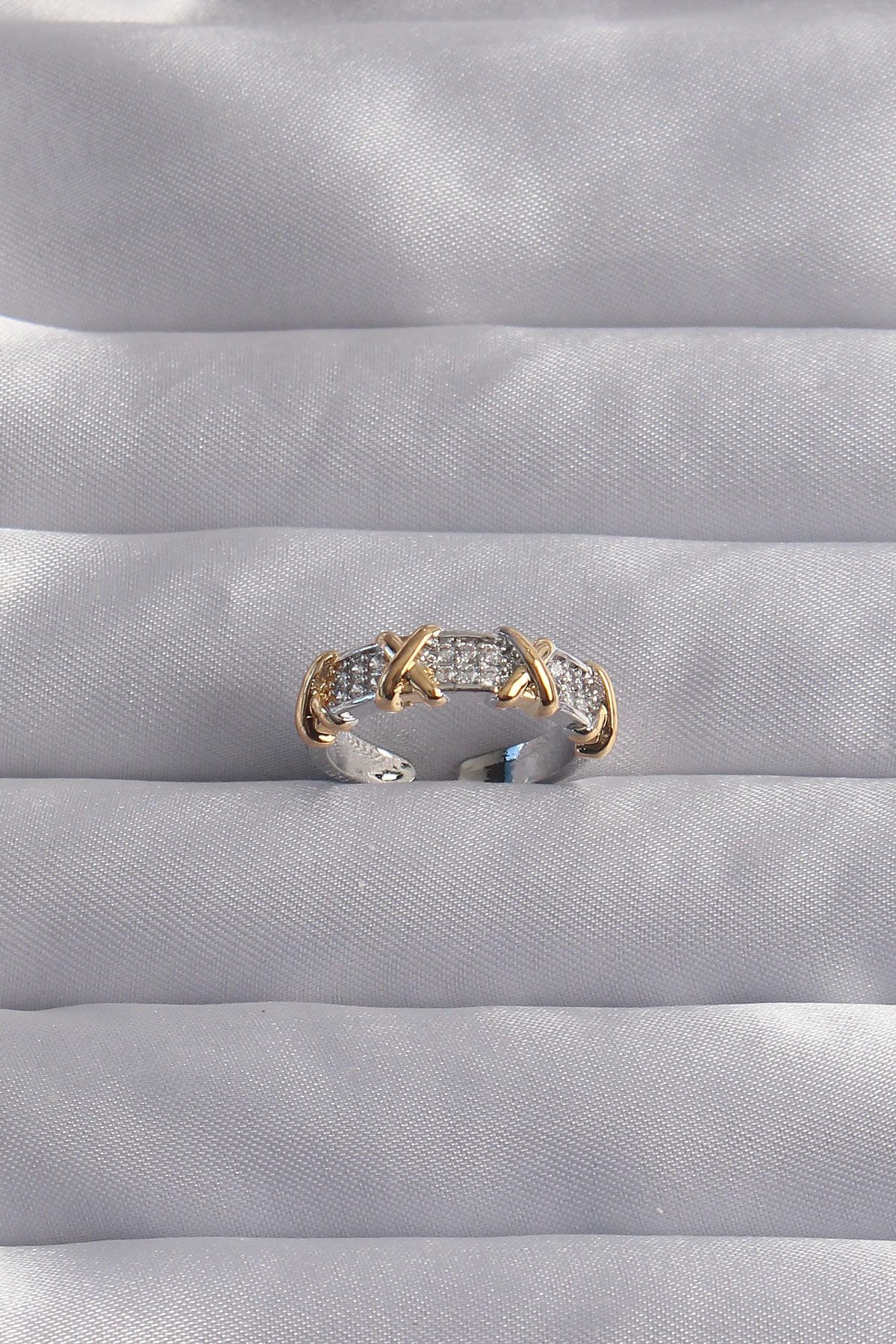 Tegan Pirinç Ayarlamalı Gümüş Renk Zirkon Taşlı XOXO Model Yüzük TG27BYK3284