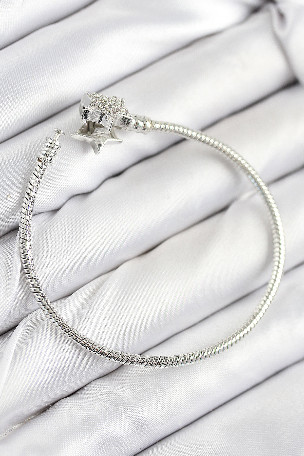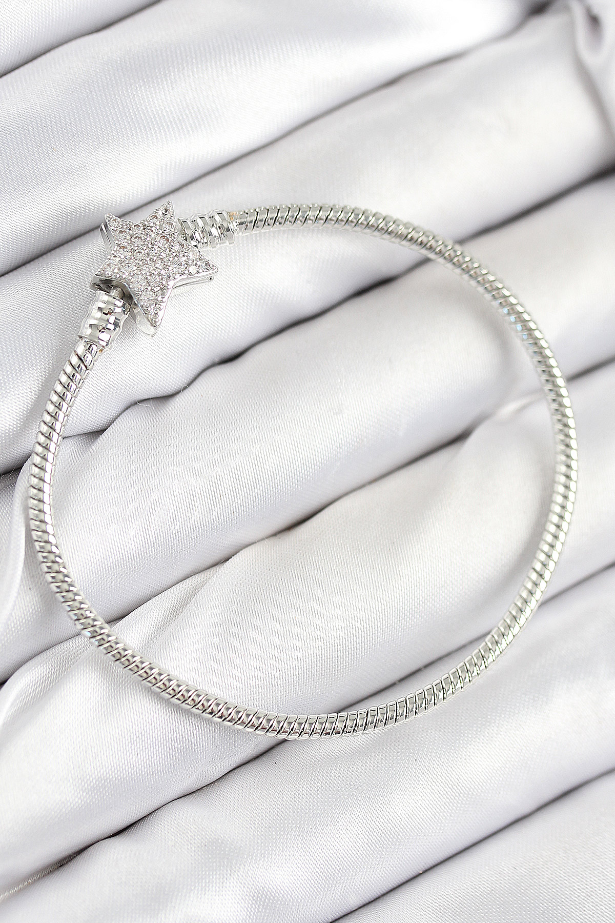 Tegan Pirinç Charm Zirkon Taşlı Yıldız Model Gümüş Renk Kadın Bileklik TG27BB7804