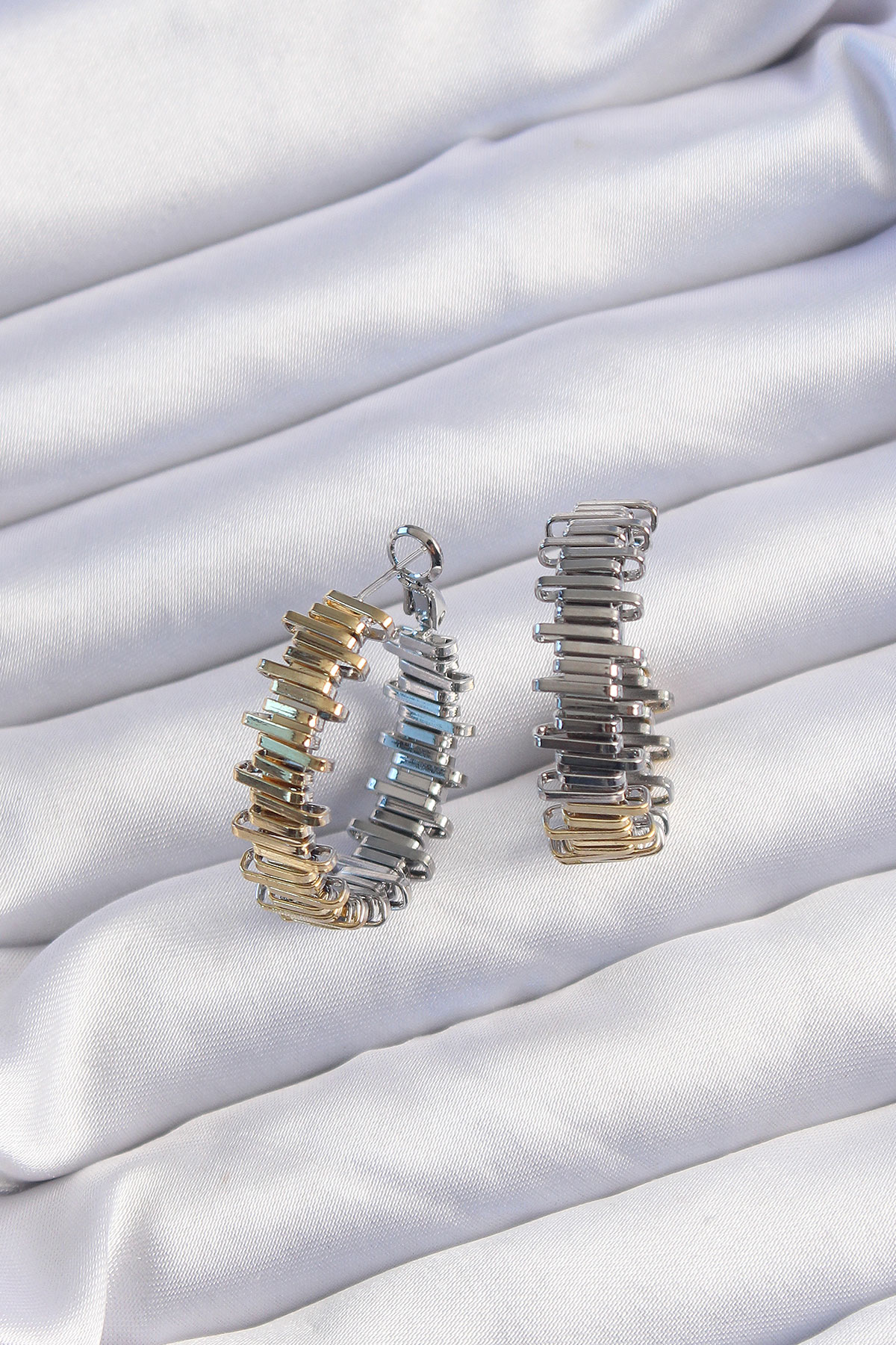 Tegan Pirinç Gold Gümüş Renkli Tırtıklı Halka Küpe TG27BKP9228